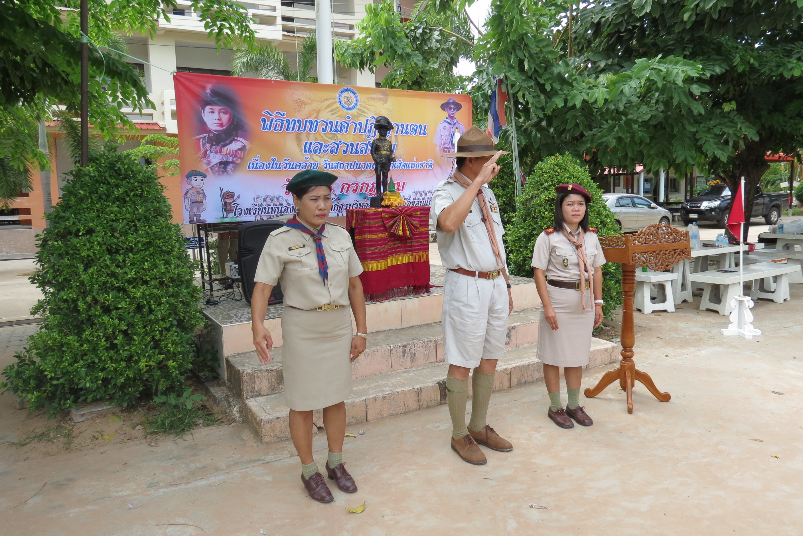 เมื่อวันที่ 6 กรกฎาคม 2560 เวลา 09.00 น.โรงเรียนบ้านหนองเสี้ยว ได้จัดพิธีทบทวนคำปฏิญาณตนและร่วมพิธีสวนสนาม หลังเสร็จพิธี ลูกเสือ-เนตรนารี ร่วมบำเพ็ญประโยชน์รอบหมู่บ้านหนองเสี้ยว ซึ่งเห็นถึงความสำคัญของการลูกเสือแห่งประเทศไทย เพื่อเป็นการรำลึกถึงพระมหากรุณาธิคุณที่มีต่อกิจการลูกเสือไทย
